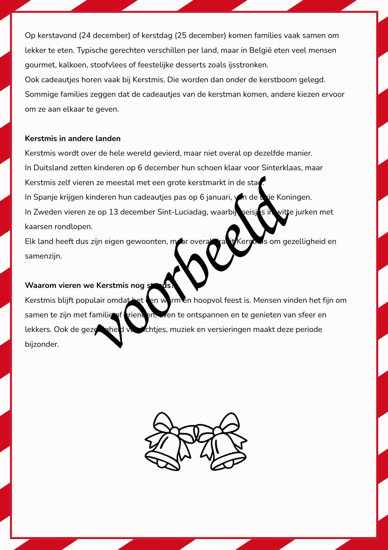 Deze kerstige oefening voor begrijpend lezen is geschikt voor leerlingen van het derde en vierde leerjaar. Ze lezen een korte tekst in het thema kerstmis en beantwoorden nadien enkele gerichte vragen om hun leesbegrip te oefenen. Perfect inzetbaar in klas of therapie.