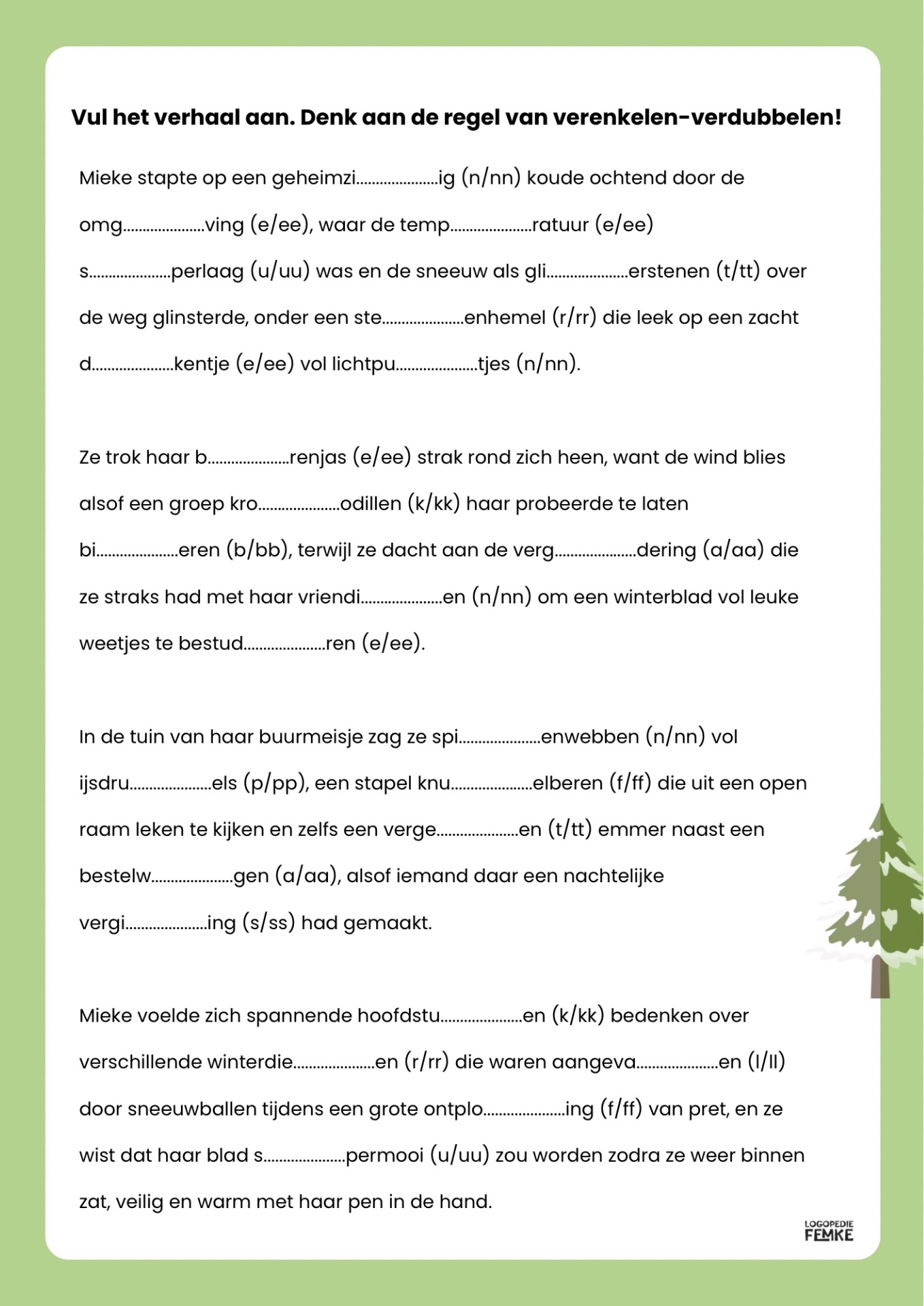 Oefen met dit werkblad op de regel van verenkelen en verdubbelen op woord-, zins- en tekstniveau.